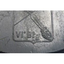 Solido pezzo in alluminio pesante , e' la fase finale della preparazoine al conio che poi verra utilizzato per lo stampo degli scudetti , si partiva dal disegno, poi il modello in gesso , il modello in metallo e poi si procedeva con la preparazione del conio in acciaio. .