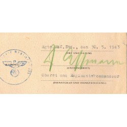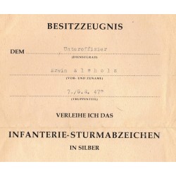 Attestato Infanteriesturmabzeichen Silber del Maggio 1943 a firma Effermann