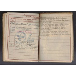 Nel wehrpass sono riportati tutti i dati inerenti alla storia militare del soldato, entrato come volontario nel 1938 dopo vari passaggi divenne Feldwebel , fu selezionato per diventre pilota o paracadutista.