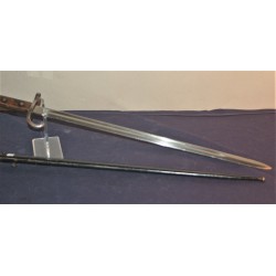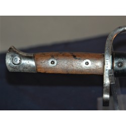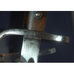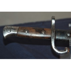 Seltenes M 1889 Bajonett für Mauser-Gewehre, Kaliber 7,65 Belgisch, ausgegeben an die Gendarmerie und Festungsartillerie. Seriennummerngleich! Ausgezeichnete lange, gerade, polierte Klinge mit belgischer Prüfmarke: Krone über JA auf der Fehlschärfe. Griff mit Prüfmarke am Steckverschluss, kaum lesbar. Der Handschutz ist mit einem O in einem Kreis gekennzeichnet, die Holzgriffe sind verschraubt. Gebrauchsspuren, aber dennoch in einwandfreiem Zustand. Die schwarz lackierte Metallscheide ist beulenfrei und besitzt über 85 % ihrer ursprünglichen schwarzen Farbe. Rostflecken. Das seltenste und edelste Bajonett der belgischen Mauser M 1889 Serie.