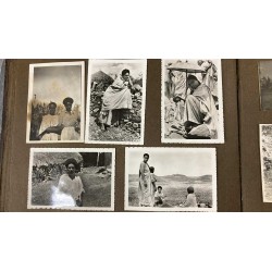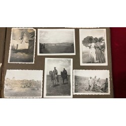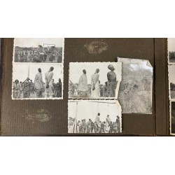 Album fotografico Guerra d Africa 1935 1936 AOI Africa Orientale Italiana , l album racconta la vita dell Ufficiale in AOI. Sono circa 180 foto , si notano le foto inerenti alla rappresaglia effettuata dopo l assalto al cantiere GONDRAND con le impiccagioni e le fucilazioni dei somali/eritrei che attaccarono il cantiere , seguono foto di vita in Africa . Molto bella la foto del somalo/eritreo in Uniforme da Ufficiale italiano. Molto bella la foto della mascotte in uniforme coloniale