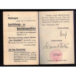 Lotto documenti e distintivi Elmi d Acciaio NS Frontkampfer Stahlelm German composto da 2 distintivi dell Associazione Elmi d Acciao , tessera e wehrpass inoltre certificato di Ferita di Guerra Argento ricevuta il 1/04/1941