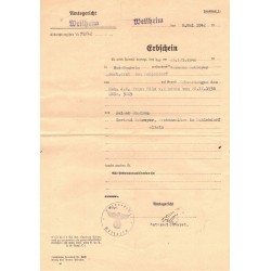Das Konvolut umfasst einen wunderschönen, kunstvoll gearbeiteten und handbemalten Terrakotta-Studentenbecher, den er vermutlich während seines Studiums geschenkt bekam. Darüber hinaus enthält das Konvolut verschiedene Dokumente, darunter seine Stebebilder, seinen Autoschein, Fotos seiner Familie, darunter seiner Frau und seiner Töchter, die Sportkarte einer seiner Töchter samt Anstecknadel und, ganz wichtig, die Sterbeurkunde des Regimentskommandeurs des 63. Regiments, 2. Jägerbataillon.