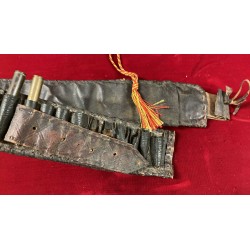 Memories of Africa from a veteran of the 1935/36 Campaign, leather ammunition belt and finely crafted wood and leather whip. The rounds in the belt/cartridge belt are inert.