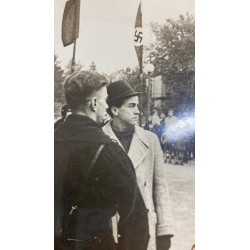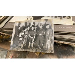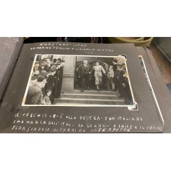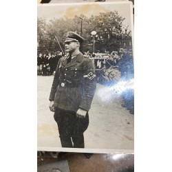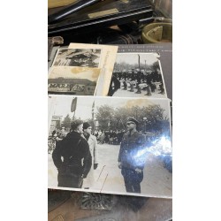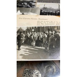 a knife, a wooden base with a dedication plaque, a photo album with dozens of photos of the actor with officials from the HJ and NSDAP, and a letter of delivery for the knife, there is a photo with a dedication from the actor and the invitation card for the premiere at the cinema.