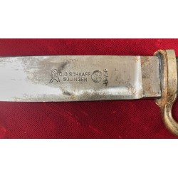An important detail is that the HJ knife, despite some defects probably due to the owner's inexperience, was produced by the C.D. Schaft company of Solingen, which produced the HJ knife with the brand engraved on the blade only in 1937.