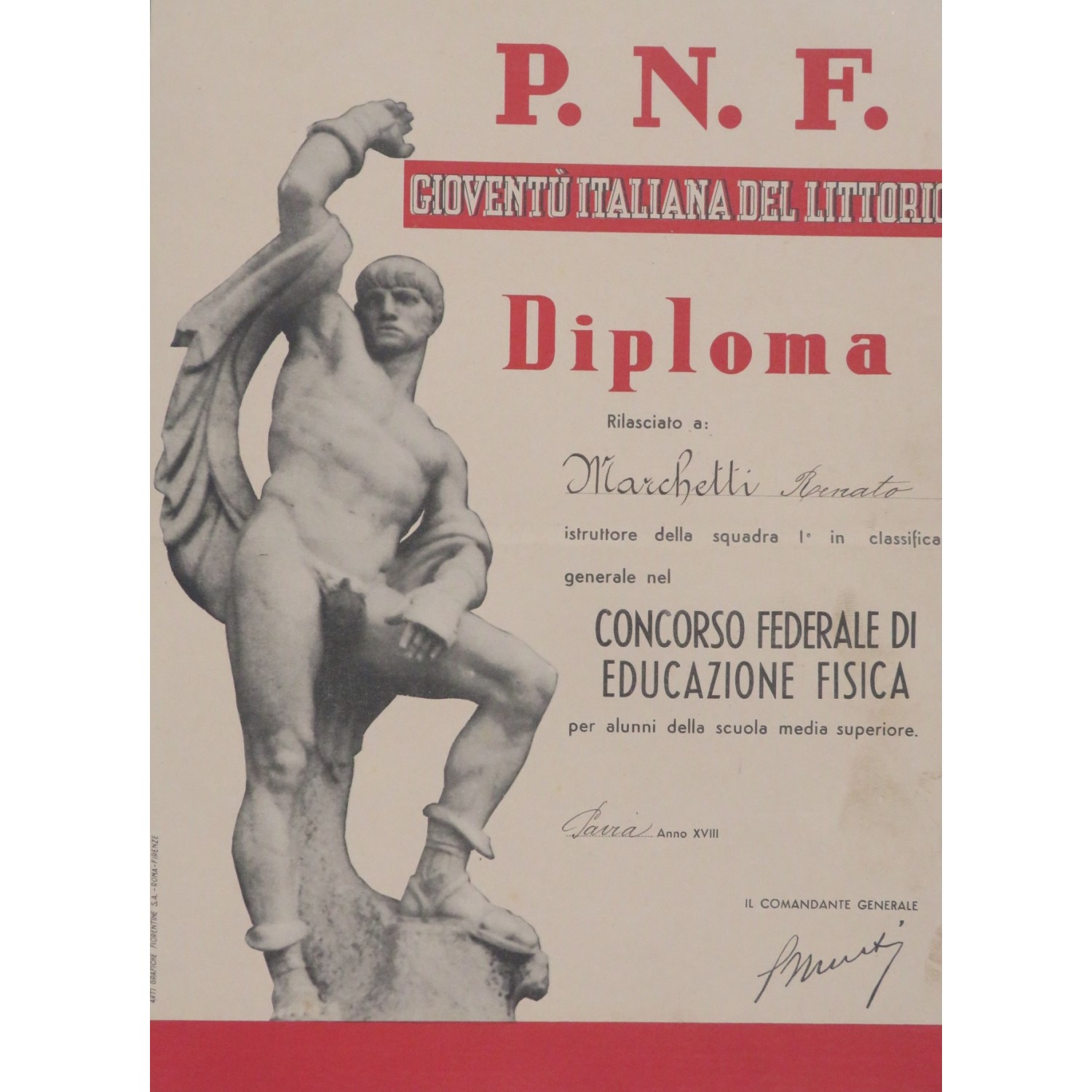 Certificate of the Italian Youth Gymnastics Competition of the Littorio