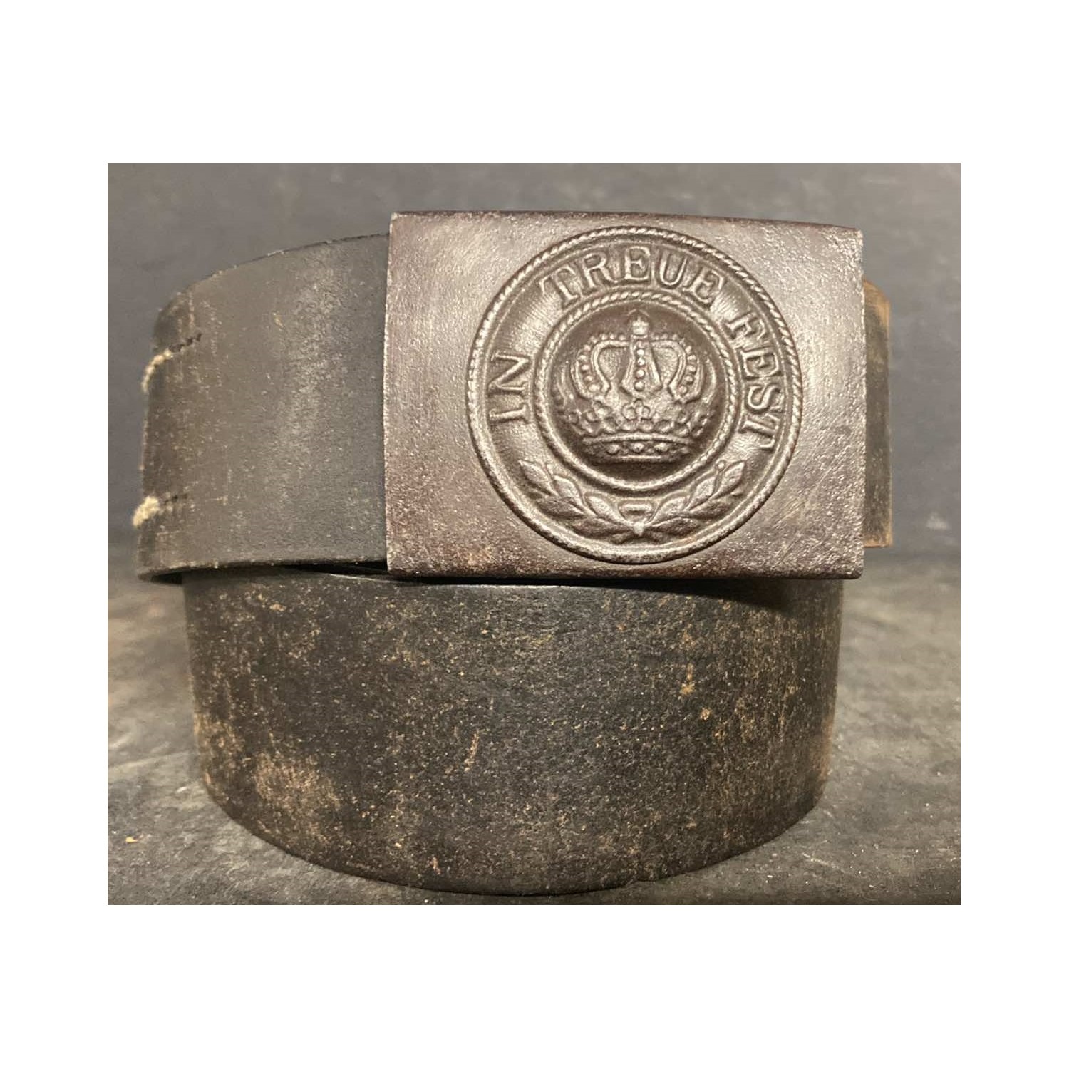 Complete Bavarian soldier's belt from the First World War period. Iron buckle with leather flap,