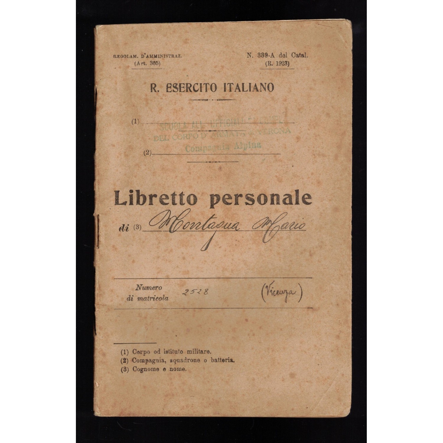 Interesting personal booklet, the equivalent to the German soldbuch, of an official student of the Royal Army.