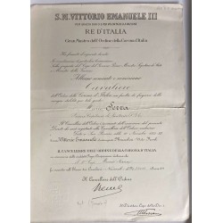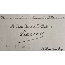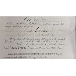 certificate of award of the Knight's Cross of the Order of the Crown of Italy