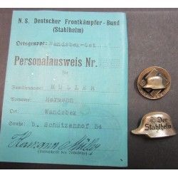 Lot of documents and badges Elmi d Acciaio NS Frontkampfer Stahlelm German composed of 2 badges