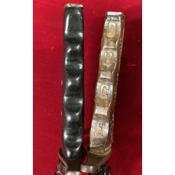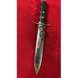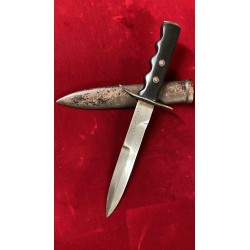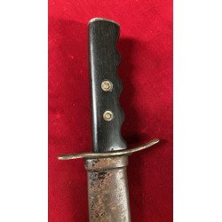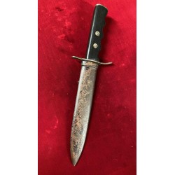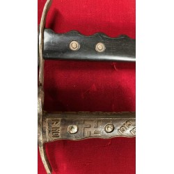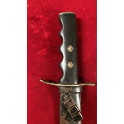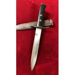 A true rarity! A 2nd model M35 dagger, presumably modified during the Italian Social Republic, with an engraving on the blade reading "LEONESSA" (Ferrea Mole Ferreo Cuore), which was the motto of the Raperti Carri of the Royal Army, and which is still the motto of the Tank Units of the Italian Republic. The dagger is very similar to a Federal Ensign (Florence Arezzo) but lacks the silver plate. However, as shown in the photos, compared to another 2nd model M35, the rivet holes are narrower, the grip is different, and even the grip fixing plate on the tang is very similar to the daggers of the Federal Ensigns. It is possible that the same company that produced the daggers for the Federal Ensigns also produced them for the REI or the RSI.